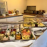 ארוחת בוקר בופה מוצעת לאורחים במסעדה.